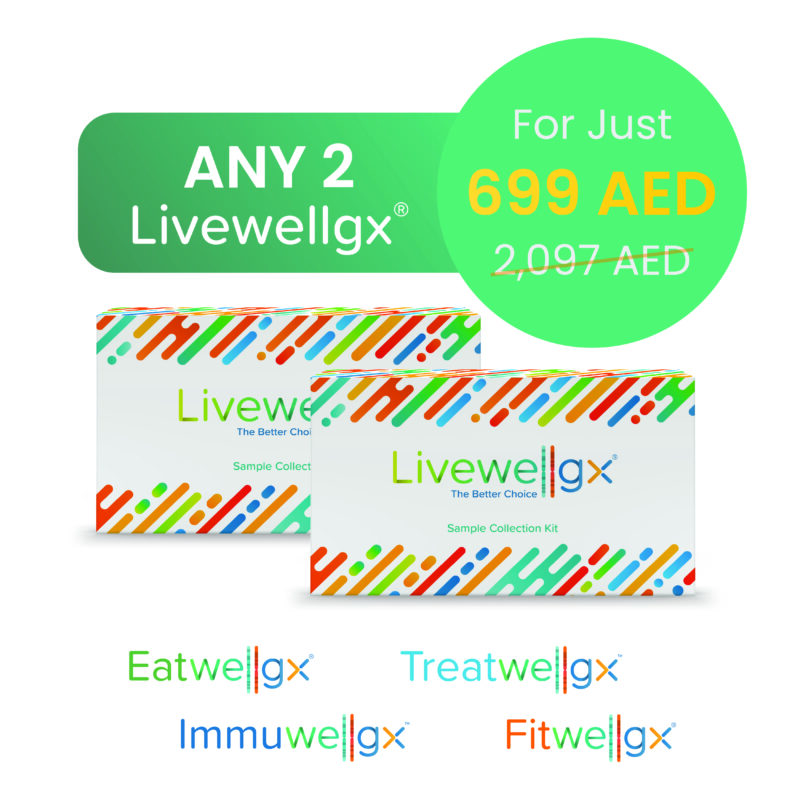 With this bundle, you can select any 2 Livewellgx® DNA reports—from Eatwell, Fitwell, Immuwell, or Treatwell—and get a FREE Ancestry Test included with your purchase.