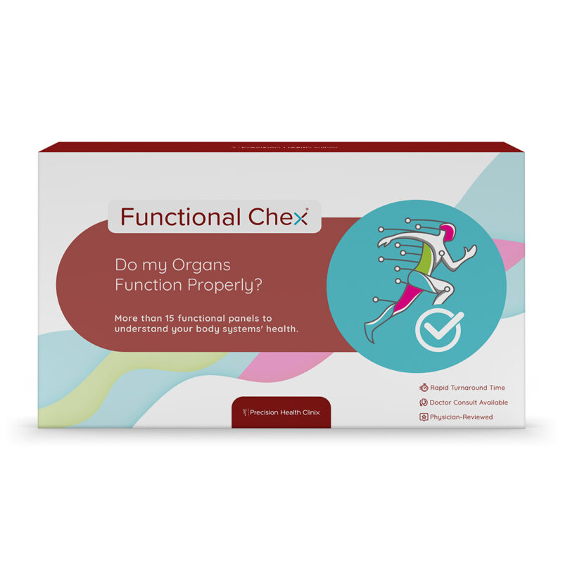 Functional Chex® offers a comprehensive analysis of over 120 biomarkers, giving you a full view of your functional health before symptoms even appear.
